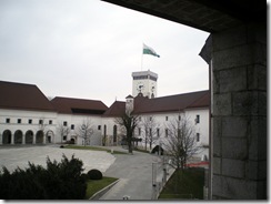 Arrivée à Ljubljana, nous avons appelé Guillaume Deprick (que nous remercions de son accueil). Nous n' avons pas de carte de la ville et nous ne trouvons pas de plan. Nous appelons Guillaume pour lui demander où nous pouvons nous rejoindre et i nous dit rendez-vous à la gare,suivez les panneaux, on suit donc les panneaux qui nous indiquaient la gare et finalement on arrive au funiculaire de la ville, En route donc pour la vraie gare avec un faux plan, un plan de l' office du tourisme. En une minute nous avions traversé la ville et nous étions mal garé juste en face de la gare. Guillaume arrive, nous souhaite la bienvenue. Nous partons déjeuner avec lui dans le centre de LJ. Il avait un peu de temps avant de se rendre à une présentation qu' il devait faire en cours, il nous sert donc de guide dans la ville de LJ, nous prenons le funiculaire pour visiter le château qui surplombe la ville. On visite de haut et on voit que LJ c'est tout petit !